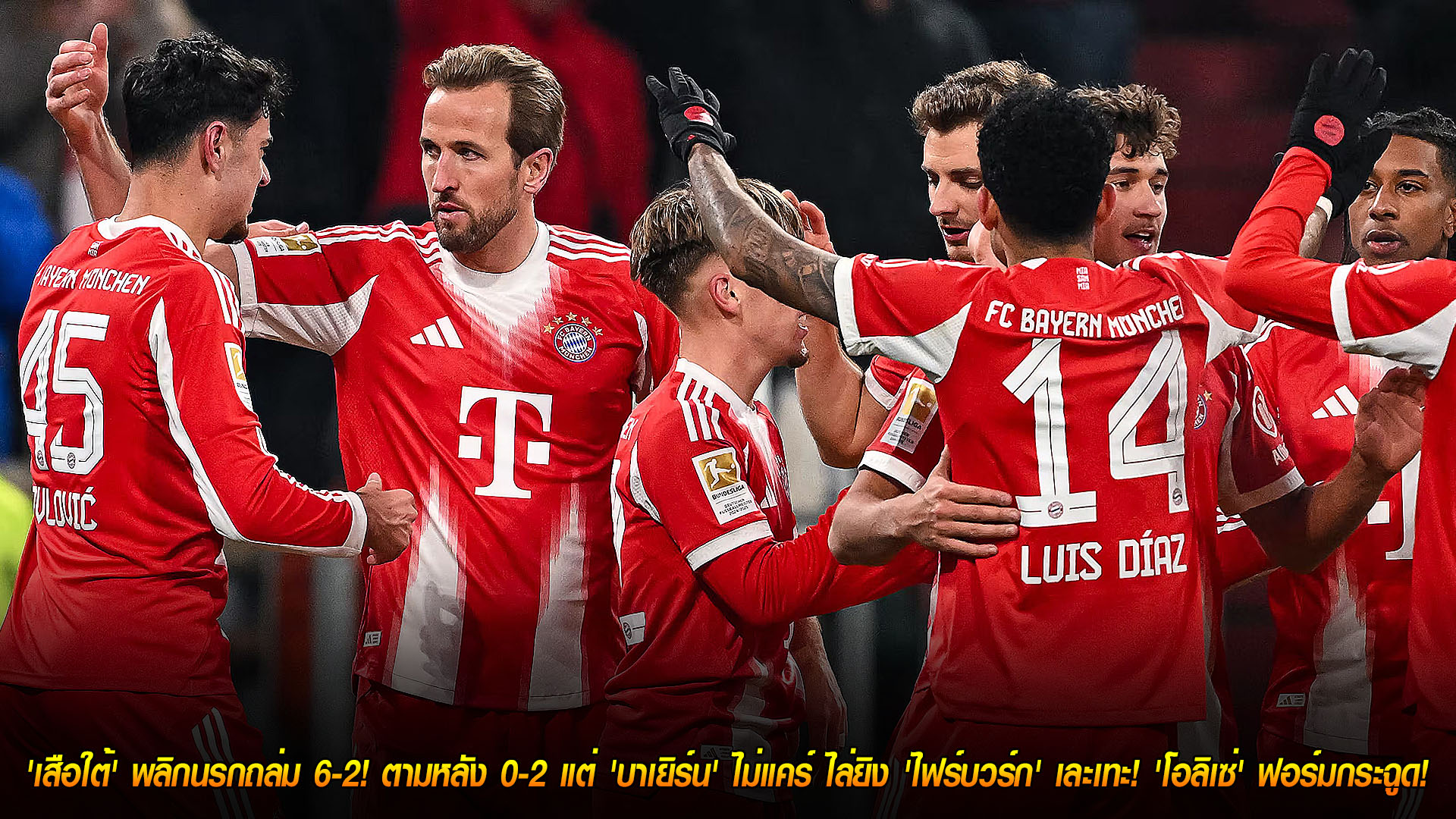 ข่าวฟุตบอล วันอาทิตย์ ที่ 23 พฤศจิกายน 2568 : โหดจัด! 'เสือใต้' พลิกนรกถล่ม 6-2! ตามหลัง 0-2 แต่ 'บาเยิร์น' ไม่แคร์ ไล่ยิง 'ไฟร์บวร์ก' เละเทะ! 'โอลิเซ่' ฟอร์มกระฉูด!
