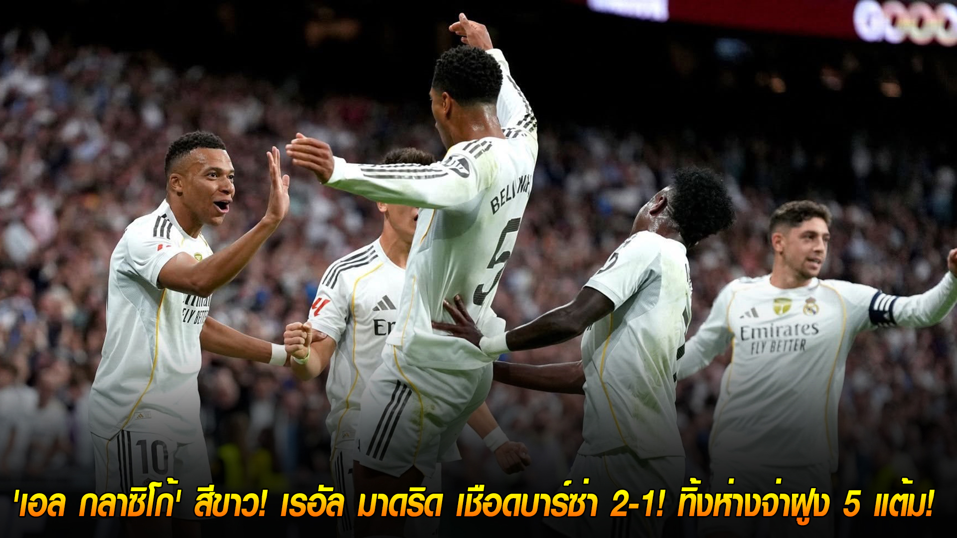 ราชันชุดขาวสุดแกร่ง! 'เอล กลาซิโก้' สีขาว! เรอัล มาดริด เชือดบาร์ซ่า 2-1! ทิ้งห่างจ่าฝูง 5 แต้ม!