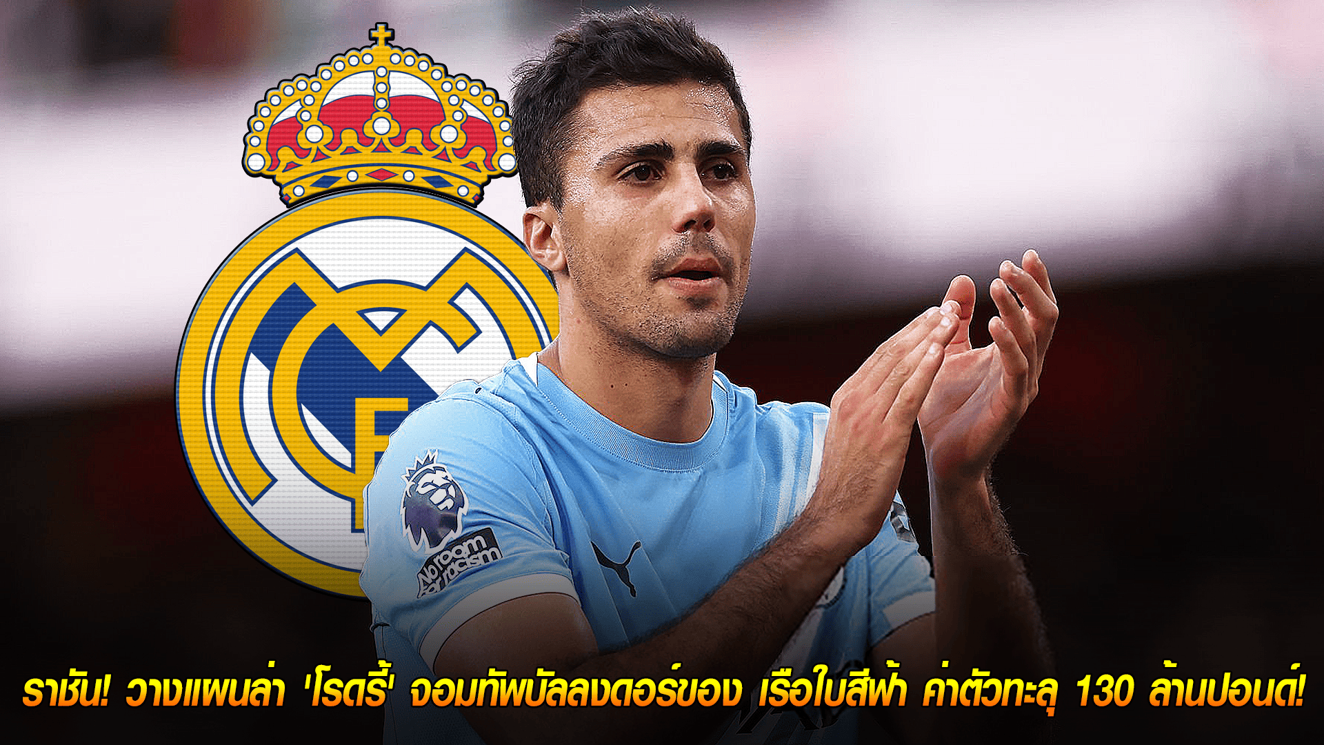 เรอัล มาดริด กำลังเตรียมทำลายสถิติ! "ราชันชุดขาว" มีแผนการทุ่มข้อเสนอก้อนโตระดับ 130 ล้านปอนด์ เพื่อคว้าตัว โรดรี้ กองกลางตัวรับทีมชาติสเปน และเจ้าของรางวัล บัลลงดอร์ ปี 2024 จาก แมนเชสเตอร์ ซิตี้ ในช่วงตลาดซื้อขายซัมเมอร์ปี 2026!