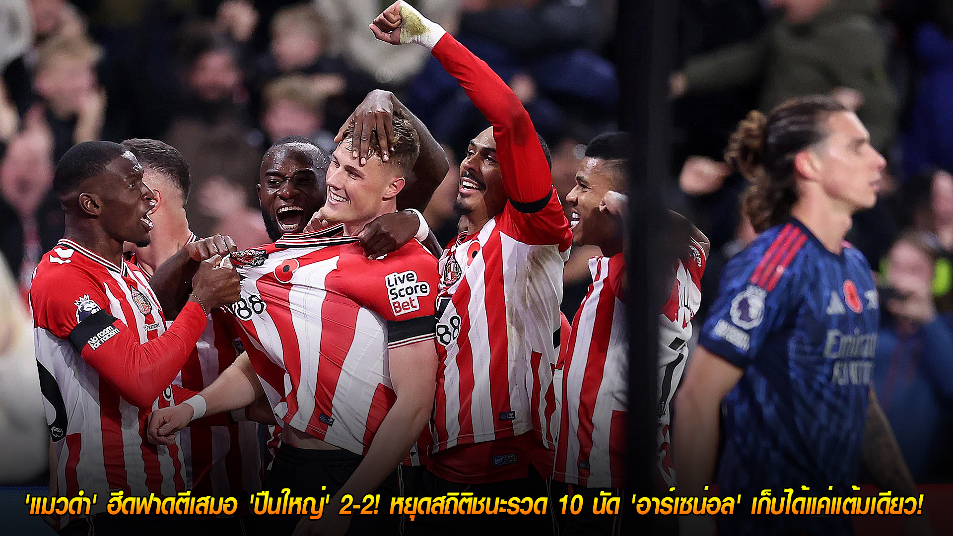 วันอาทิตย์ ที่ 9 พฤศจิกายน 2568 : ช็อกทดเจ็บ! 'แมวดำ' ฮึดฟาดตีเสมอ 'ปืนใหญ่' 2-2! หยุดสถิติชนะรวด 10 นัด 'อาร์เซน่อล' เก็บได้แค่แต้มเดียว!