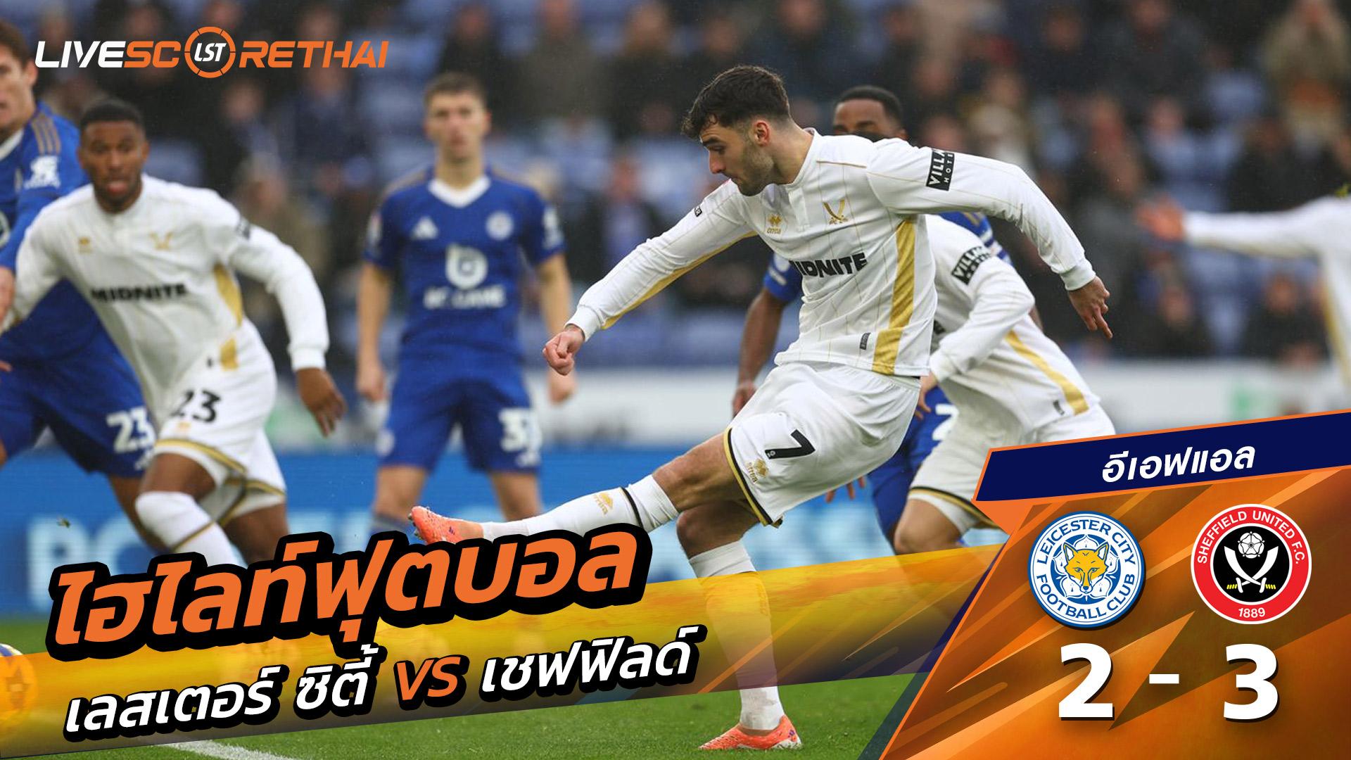 ดูฟรี ไฮไลท์ฟุตบอล อีเอฟแอลแชมเปียนชิป เลสเตอร์ ซิตี้ VS เชฟฟีลด์ยูไนเต็ด ที่ livescorethai4.info